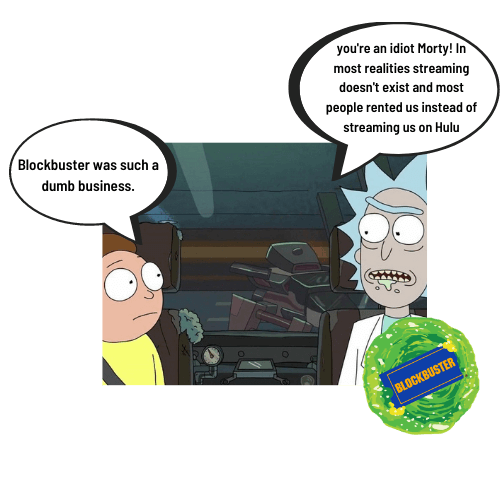 Trying to win customers back from the late fees fiasco, an intern at Blockbuster suggested a way to rent movies via a USB from their local store.Demanding high levels of innovation Blockbuster created the MovieWallet™ which allowed folks to download and store up to 14 movies at once.Little did they know that this technology would also become incredibly useful for storing other digital assets.They eventually bought out their competitor Netflix who, while sending DVDs through the mail at the time couldn't pivot to a digital format fast enough.Now Blockbuster moves into their next stage minting NFTs of timeless movie moments going from late fees to gas fees.