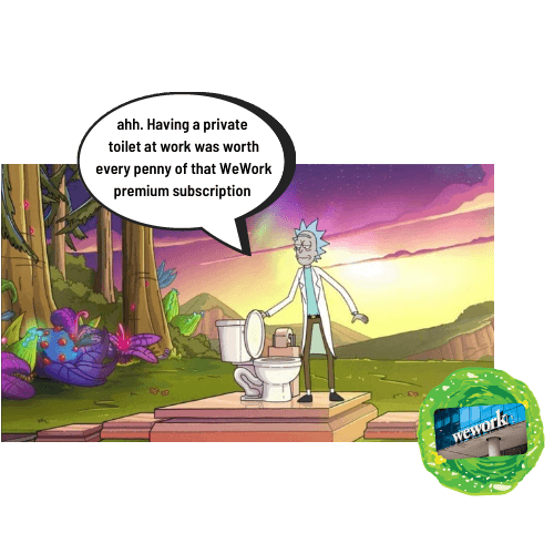 A real estate company disguised as a tech startup, WeWork opened up the possibility for any business to become a tech business.Set on being the world's first trillionaire, Adam Neumann was clearly up for the challenge. In preparation for their IPO in 2019 they turned up the subscriptions to 11.Starting with WeLive: adult dorms for tech employees, WeCoffee, WeGyms, WeClean, WeDrive and WeCook soon followed which brought the 360 experience from the morning you woke up to when you went to bed.